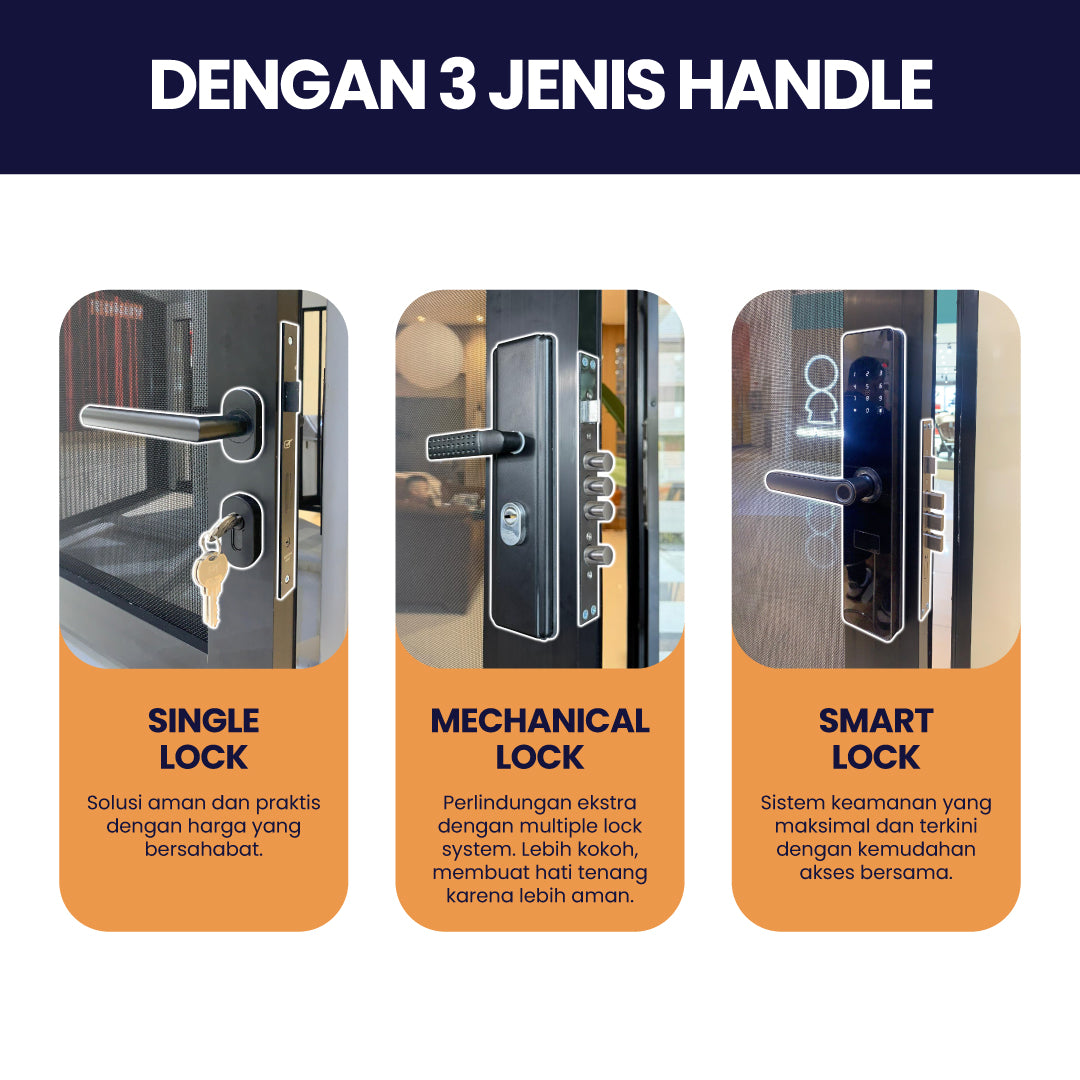 - Profil frame tebal, kokoh, dan material anti rayap.