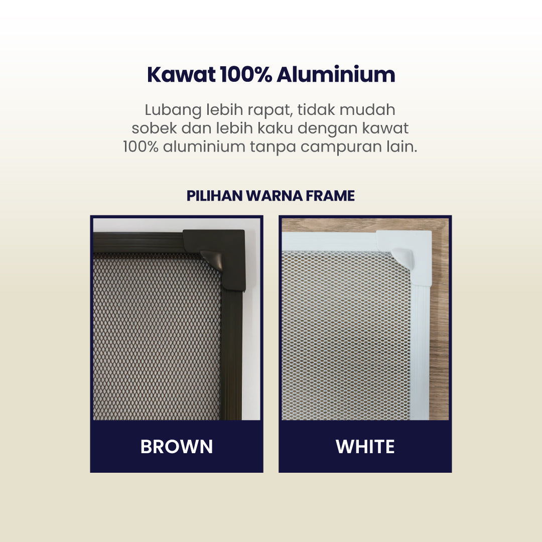 - Dapat disesuaikan dengan ukuran jendela/pintu sehingga ukuran pas (custom)